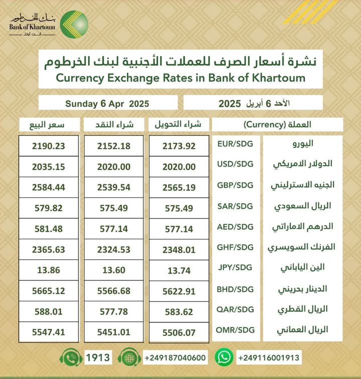 أسعار العملات الأجنبية مقابل الجنية السوداني الصادرة اليوم الأحد الموافق 6/ أبريل /2024م الصادرة من بنك الخرطوم