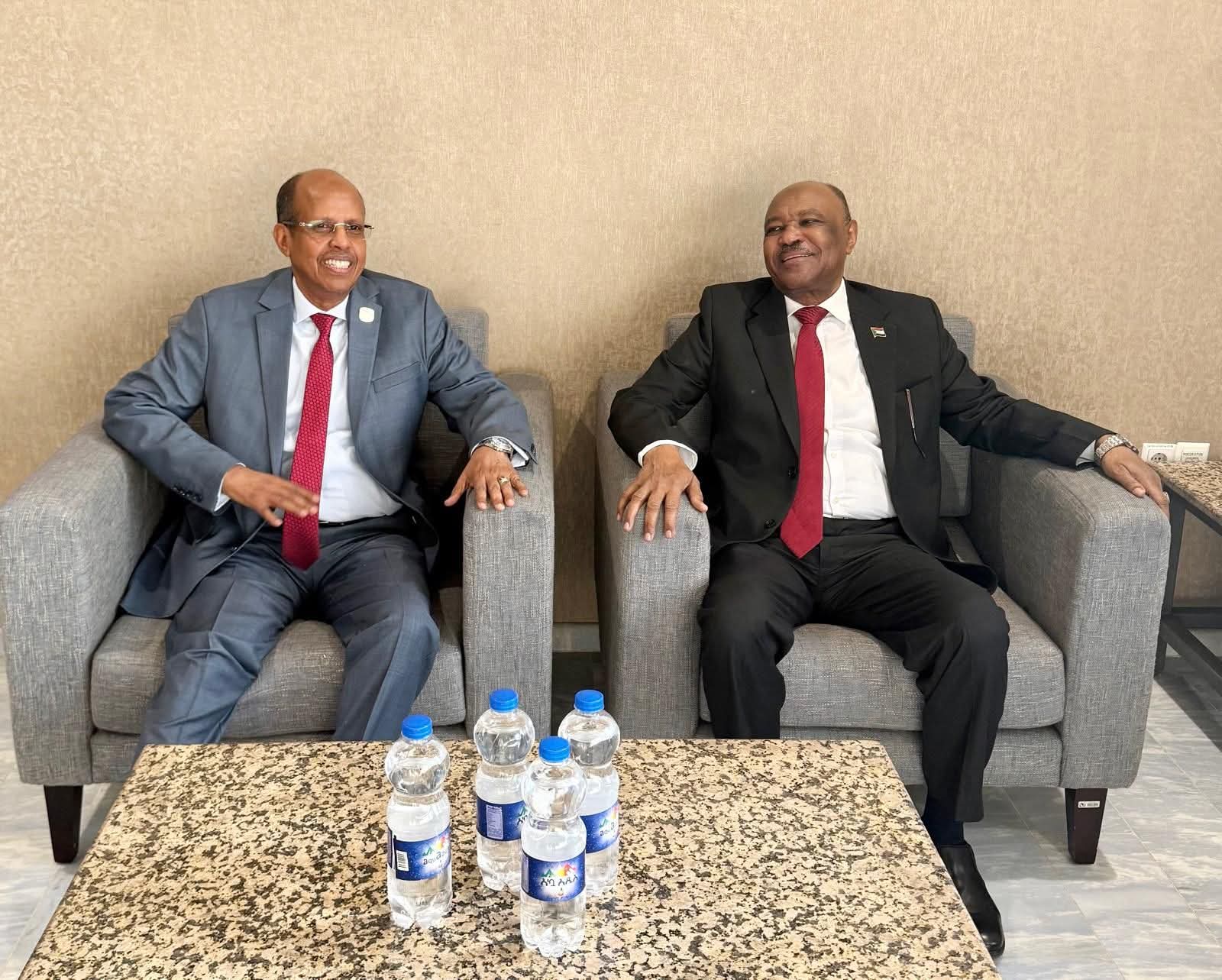 التقى وزير الخارجية والتعاون الدولي، السفير محيي الدين سالم أحمد، اليوم بمقر مفوضية الاتحاد الأفريقي في أديس أبابا، رئيس المفوضية محمود يوسف، لبحث تطورات الأوضاع في السودان وتعزيز التعاون المشترك.