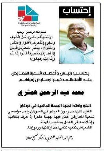 رحل محمد عبد الرحمن همشري… ذاك المبدع السوداني المسكون بحب الناس والوطن، رجل كان يتنفس إبداعًا في مجال تنظيم المعارض ، كأنما خُلق ليمنح الفعاليات روحها، ويمنح الحضور سببًا إضافيًا للدهشة.