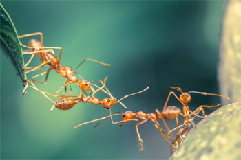 على الرغم من امتلاكه نحو 250 ألف خلية عصبية مقارنة بمليارات الخلايا التي لدينا نحن البشر، فإن مملكة النمل ما زالت تضرب أروع الأمثلة على المآثر التي يمكن لأفرادها تحقيقها بتعاونهم معا. فممالك النمل أظهرت في دراسة سابقة قدرة على تجنب الازدحام، كما أن أفراد النمل يعرفون جيدا متى يتراجعون حتى يفسحوا المجال لفريقهم ليصبح أكثر فاعلية وكفاءة في أداء مهامه.