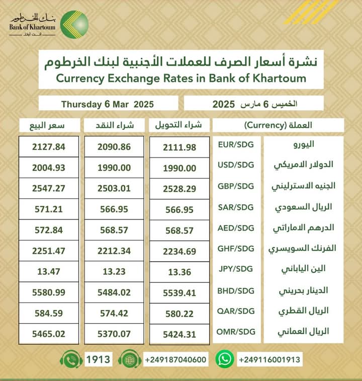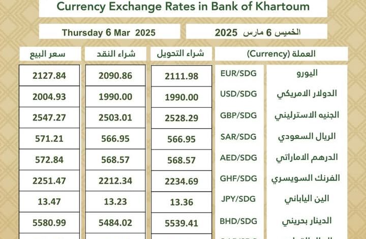 أسعار العملات الأجنبية من بنك الخرطوم