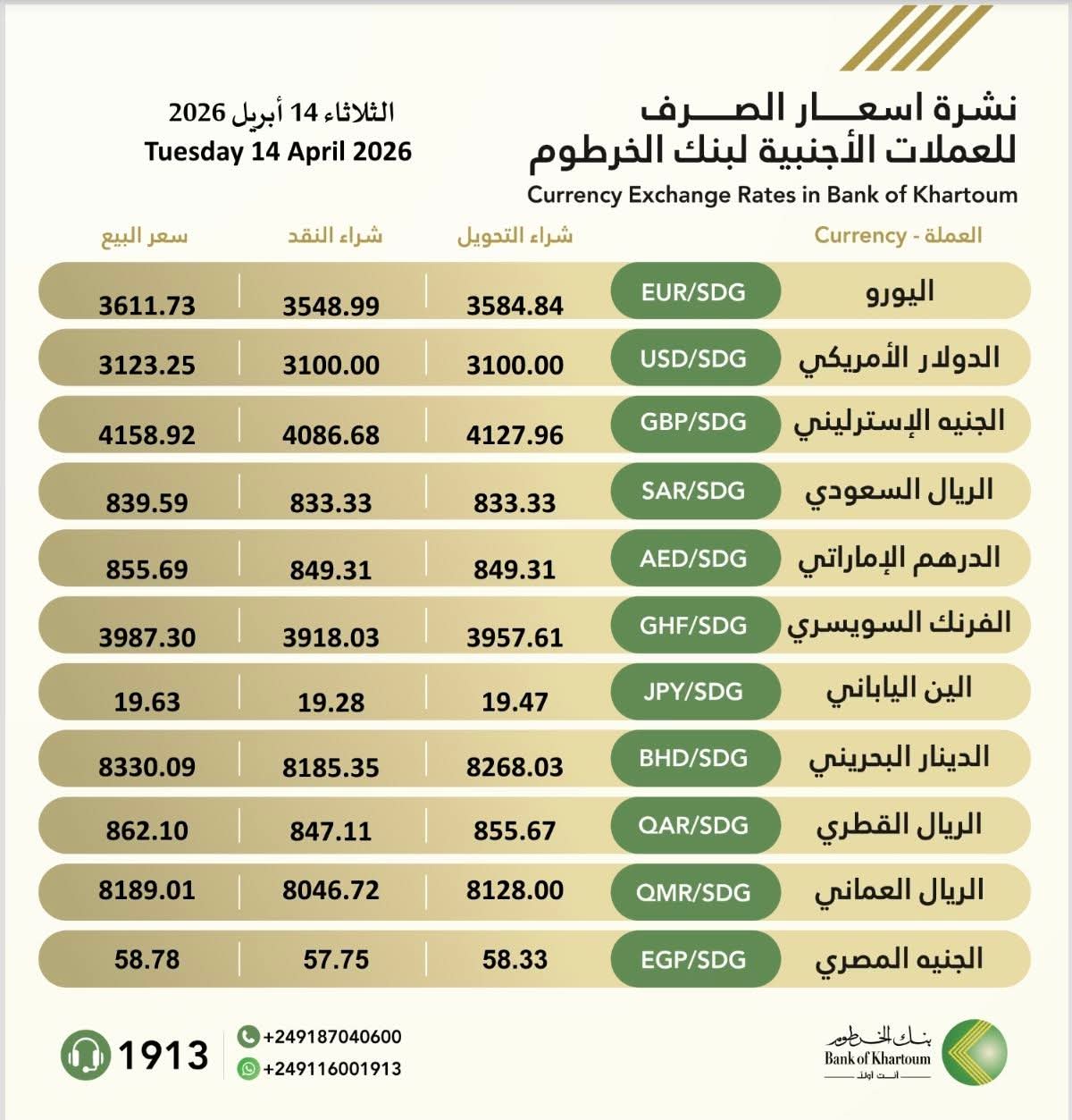 أسعار صرف العملات الأجنبية – بنك الخرطوم