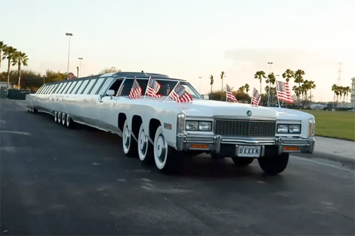 أكثر من 30 مترا.. أطول سيارة في العالم مجهزة بحمام سباحة وملعب غولف ومهبط للطائرات