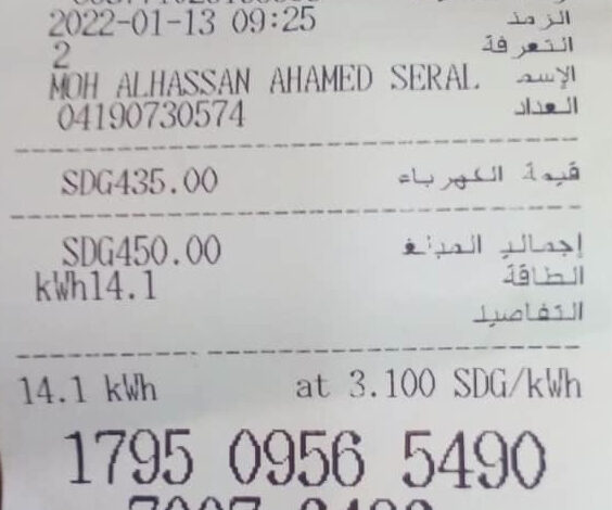 وأكد المواطن عمر سليم ، أنه اشتري البوم كهرباء بمبلغ ( 450) جنيه وتم منحه نحو ( 14 ) كيلو واط فقط، ليبلغ سعر الكيلو واط الواحد نحو (31) جنيه الذين تجاوز استهلاكهم ال( 600) كيلو واط .