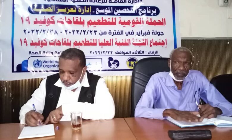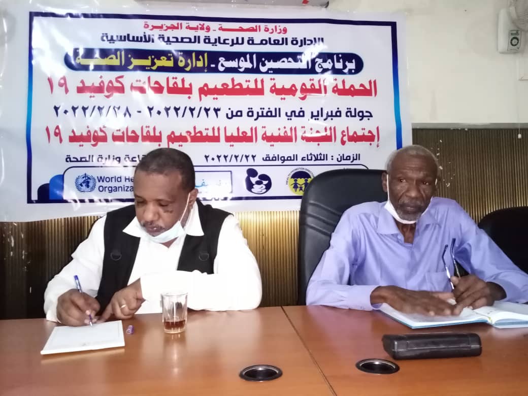 اكد دكتور اسامة عبد الرحمن احمد الفكي مدير عام وزارة الصحة ولاية الجزيرة عن امله ان تحقق الولاية التغطية الكلية بلقاحات كوفيد ١٩ بنهاية يونيو ٢٠٢٢ للفئات المستهدفة بالتطعيم من عمر ١٨ عاما فما فوق معلنا تسخير كافة الامكانيات لانجاح الحملة القومية للتطعيم بلقاحات كوفيد ١٩ جاء ذلك خلال مخاطبتة لاجتماع اللجنة الفنية العليا للتطعيم بقاعة رئاسة الوزارة مقدما شكره للمجهودات الكبيرة التي ظلت تطلع بها الاجهزة الاعلامية الشريك الاصيل لكافة الانشطة الصحية مشيدا بالدعم المتصل لمنظمة الصحة العالمية لتعزيز جهود وزارة الصحة الرامية للحد من انتشار الجائحة … و استعرض أ. الهادي علي بوب مدير عام وزارة الثقافة والاعلام البرامج التي قدمتها الاجهزة الاعلامية المختلفة للحد من انتشار جائحة كورونا مؤكد علي تسخير وسائل الاعلام لانجاح الحملة القومية للتطعيم بلقاحات كوفيد ١٩ … واقر أ. محمد ادم مدير الامن الاقتصادي بولاية الجزيرة اهتمام وزارة الصحة بالولاية الحد من انتشار جائحة كورونا مؤكد التزام الامن الاقتصادي بالدعم الكامل لانجاح الحملة … وابان أ. كامل الفاضل مدير برنامج التحصين الموسع اكتمال كافة الترتيبات لانطلاق الحملة غدا وتستمر لمدة ٦ ايام وقال ان الحملة ستنفذ من خلال ٣ فرق جوالة وثابتة وموقتة عبر ٢٥٢ مركز بالولاية من جانبها اشارت أ. لطيفة محمد امان مدير ادارة تعزيز الصحة ان ادارتها ستنفذ خطة متكاملة للوصول للمستهدفين بالتطعيم في ٤٥ وحدة ادارية عن طريق الميكرفون الجوال ولجان الثقة في المجتمع ( ائمة المساجد _ كوادر صحية_ قساوسة _ معلمين _ ورجال الدين _ والنافذين في المجتمع) بجانب وسائل الاعلام والتواصل المختلفة والمسرح المتجول والايام المفتوحة بالاسواق الكبري