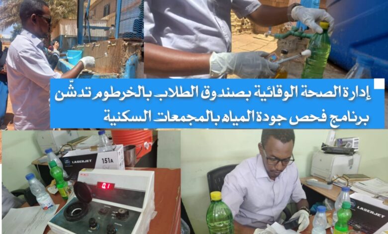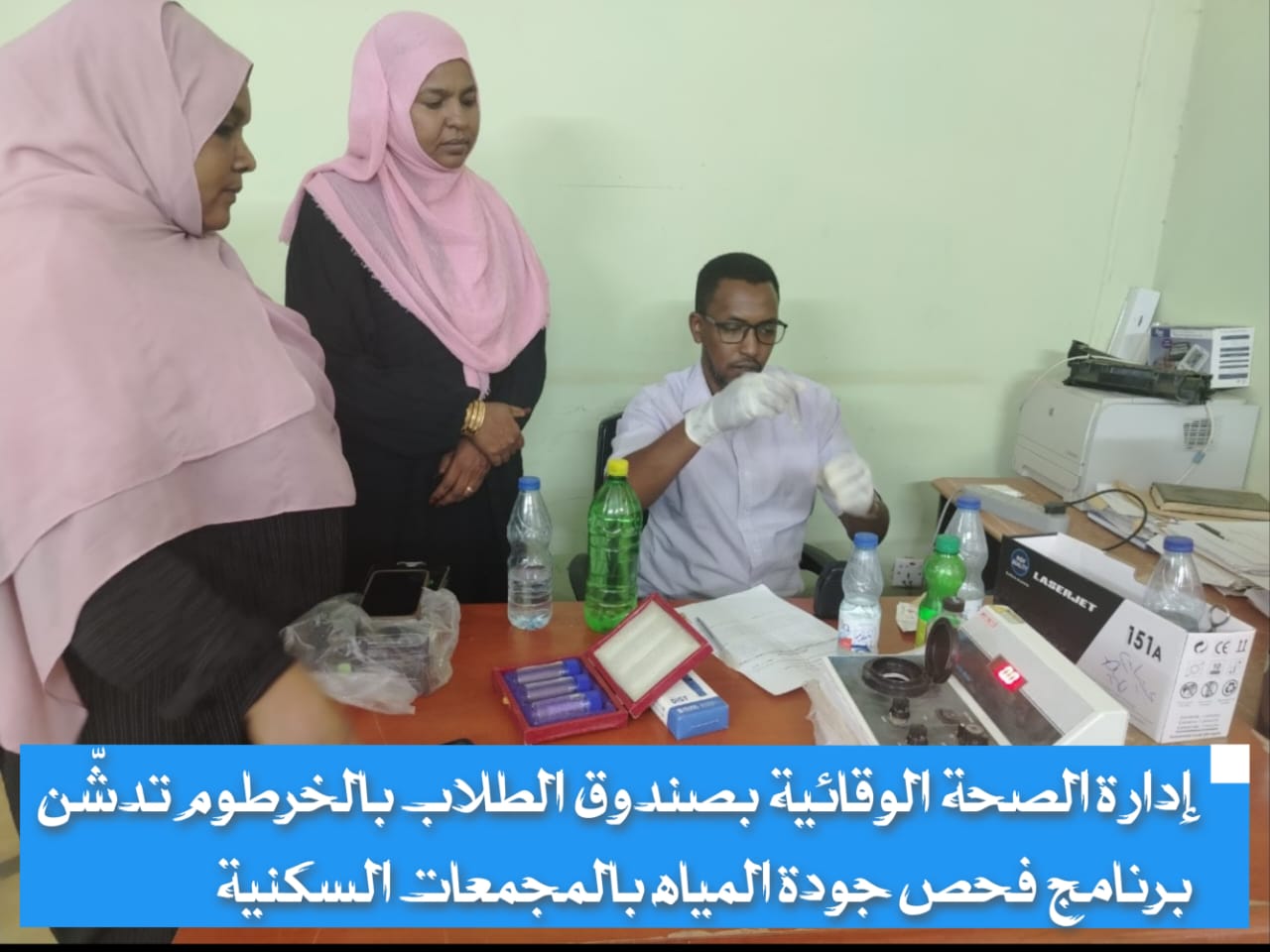 في إطار جهودها المستمرة للحفاظ على صحة وسلامة الطلاب، دشّنت إدارة الصحة الوقائية بالصندوق القومي لرعاية الطلاب أمانة ولاية الخرطوم بداية العمل في برنامج فحص جودة المياه بالمجمعات السكنية. ويهدف البرنامج إلى التأكد من صلاحية المياه وخلوها من الملوثات باستخدام أجهزة فحص متطورة لتعزيز الرقابة الصحية في كافة مرافق الخرطوم الطلابية.