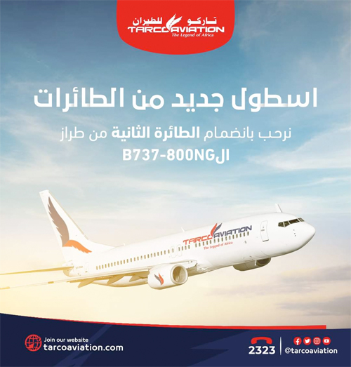 أعلنت شركة تاركو للطيران عن انضمام الطائرة الثانيه من طراز الB737-800NG لاسطولها.