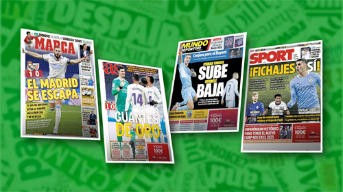 والحديث المطول عن فوز ريال مدريد وانفراده بالصدارة ،، واستفتاء تجديد ملعب الكامب نو، كما نوهت الصحف بالعرض الكبير لتيبو كورتوا صاحب القفازات الذهبية …
