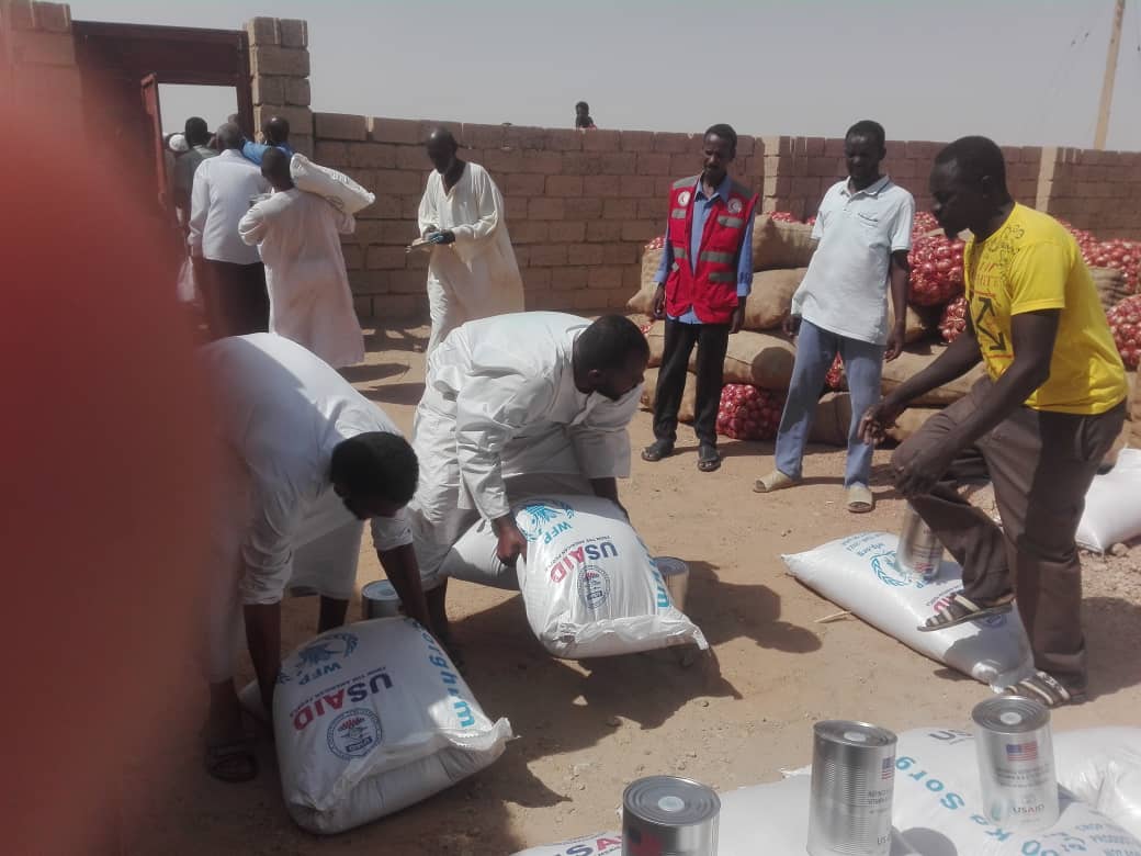 الهلال الأحمر محلية الدامر يوزع مواد غذائية للاسر الوافدة بالدامر