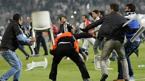 وأعقب دخول المشجع اقتحام مزيد من الجمهور لأرض الملعب وسط فوضى عارمة بين الفريقين التركيين.