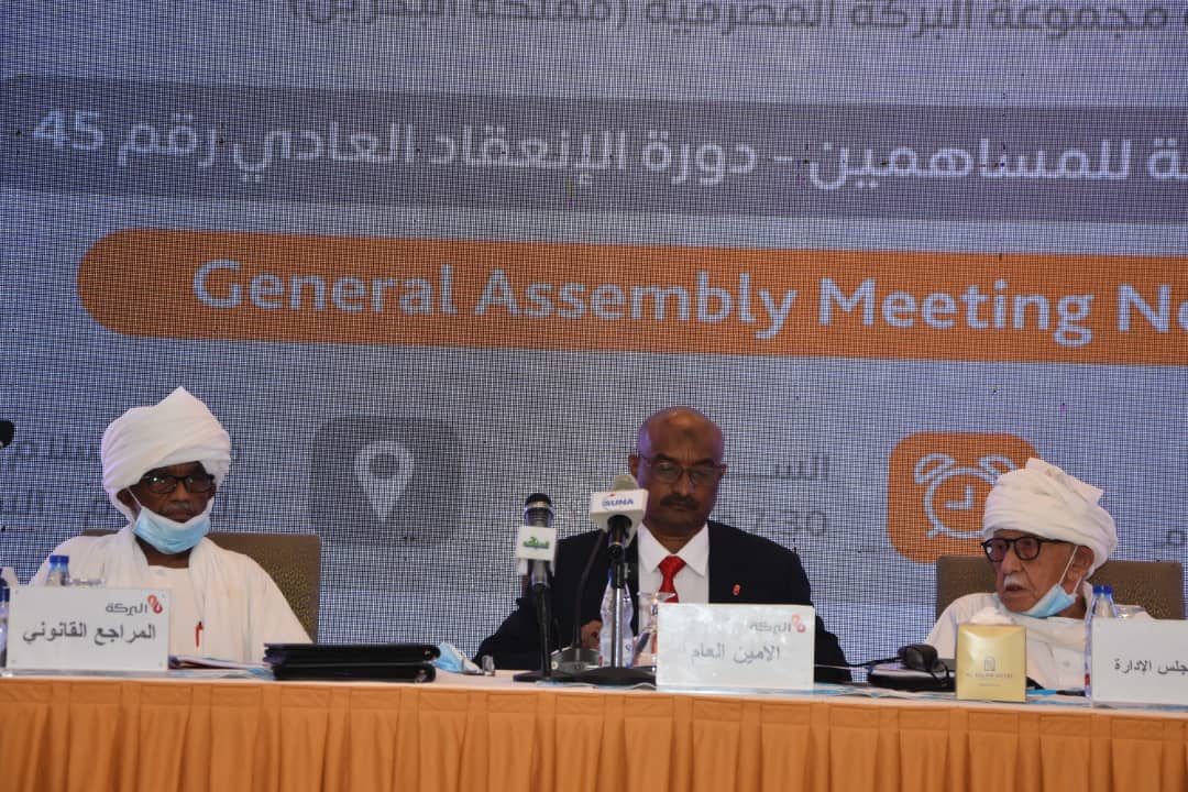 أجازت الجمعية العمومية لبنك البركة السوداني في دورة الانعقاد العادية رقم( 45) لمساهمي البنك اليوم السبت ، تقرير مجلس الإدارة حول البيانات والقوائم المالية للسنة المالية المنتهية في العام 2021م، وتقرير المراجع القانوني وتقرير هيئة الرقابة الشرعية ، وتخصيص الأرباح الصافية بعد موافقة بنك السودان المركزي، وإجازة توصية مجلس الادارة بإعادة تعيين أعضاء مجلس الادارة ، وتفويض مجلس الإدارة بتعيين المراجع القانوني للبنك للعام 2022م ، بجانب انتخاب مجلس الإدارة لشغل مقاعد المجلس للدورة الجديدة للفترة من (2022 الي 2025).