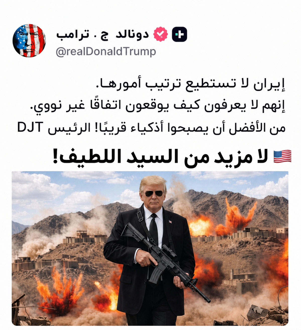 في تصعيد جديد، نشر الرئيس الأمريكي دونالد ترامب عبر منصة تروث سوشيال رسالة تحذيرية شديدة اللهجة لإيران، مرفقة بصورة تعبيرية، ملوحاً بانتهاء سياسة اللين تجاه طهران. وعلاوة على ذلك، تأتي هذه التطورات في ظل حالة الجمود التي تعتري مسارات التفاوض بشأن الملف النووي الإيراني.