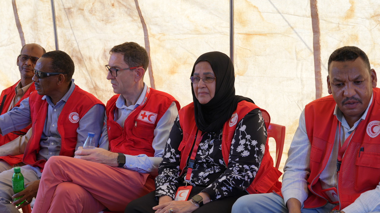 وكان في استقبال الوفد المدير التنفيذي لفرع نهر النيل، إمام الدين محمد أحمد، الذي أوضح أن مخيم النهضة يستوعب حاليا نحو 800 أسرة نازحة، وقد وفّر لهم الفرع بالتعاون مع الجهات ذات الصلة المأوى وخدمات المياه والإصحاح، إضافة إلى الدعم النفسي الاجتماعي، وخدمات الرعاية الصحية الأولية عبر عيادة جوالة مزودة بسيارة إسعاف للطوارئ.