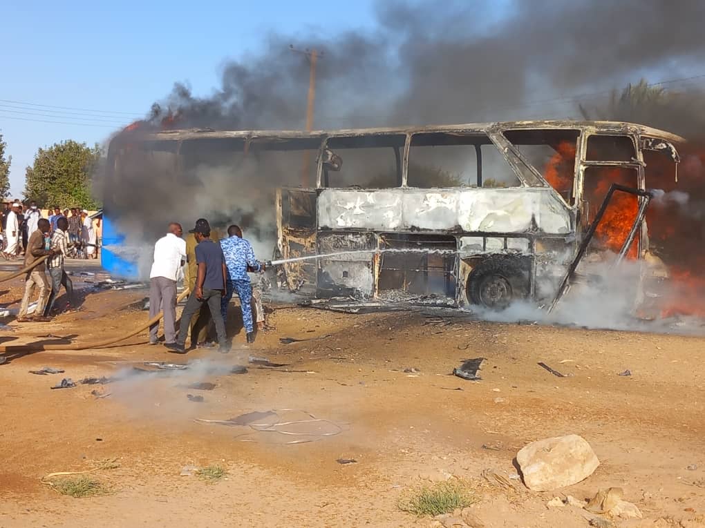 حريق هائل ل”باص سفري”بمدينة سودانية