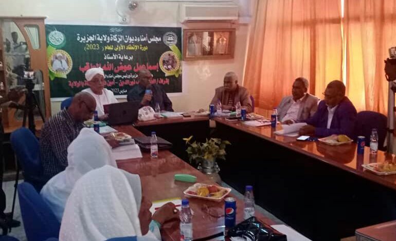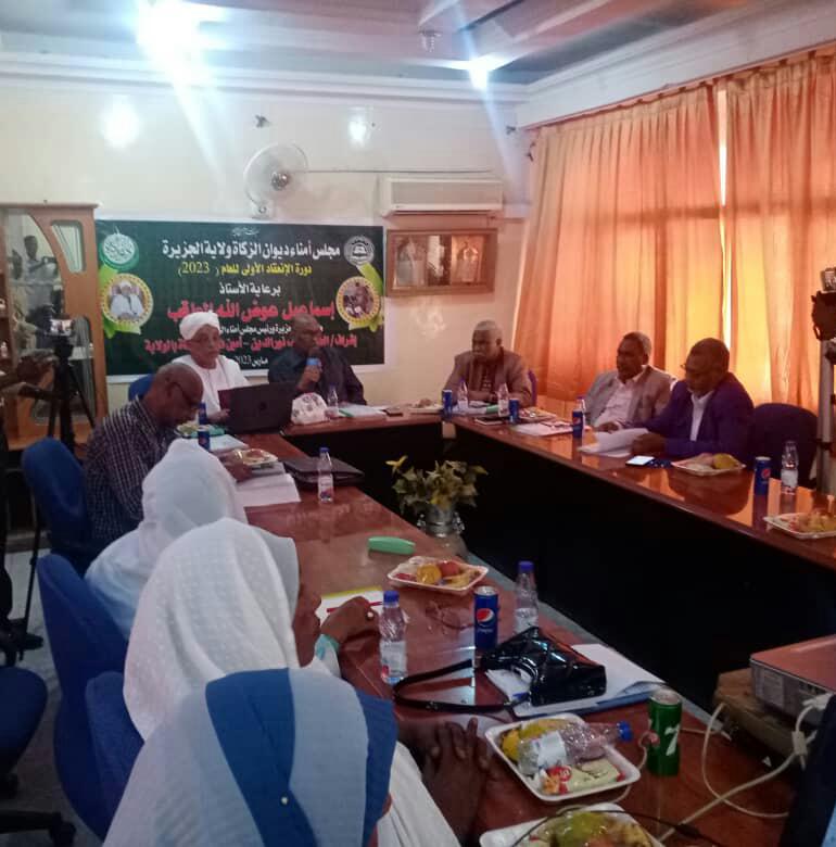 بحث مجلس أمناء ديوان الزكاة بولاية الجزيرة بقيادة والي الجزيرة رئيس المجلس صباح اليوم بقاعة قصر