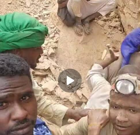 فور تلقيه بلاغ بانهيار بئر ذهب بمنطقة قبقبة ضواحي الشركة المغربيةعلي ثلاثة اشخاص من قبيلة الدار حامد