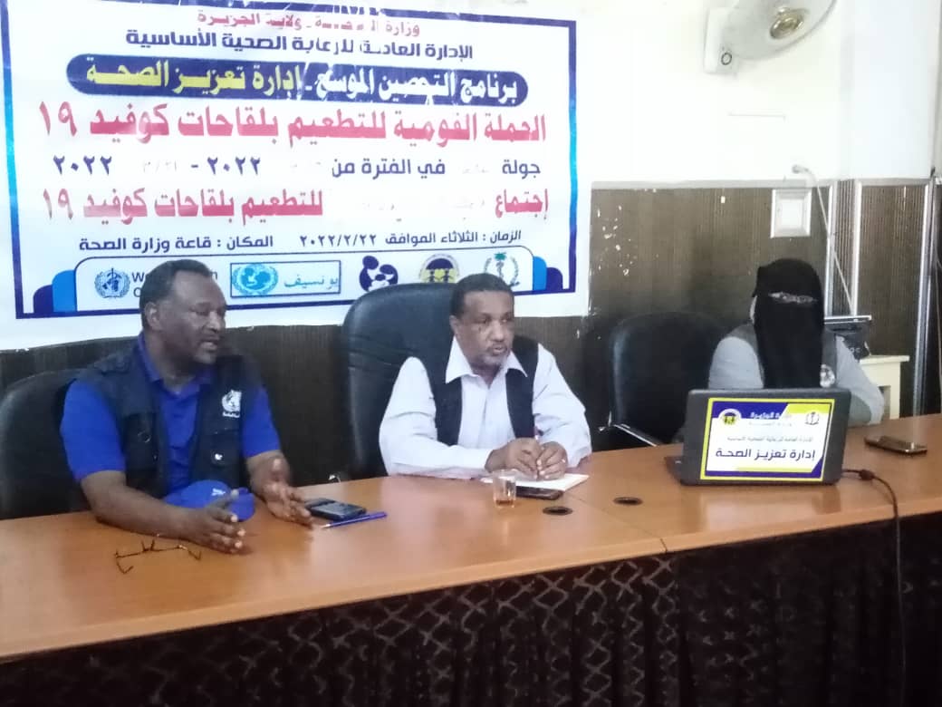 خاطب دكتور اسامة عبد الرحمن احمد الفكي مدير عام وزارة الصحة ولاية الجزيرة التنوير الذي نظمته ادارة تعزيز الصحة بوزارة الصحة والذي استهدف رجال الدين بغرض انطلاق الحملة القومية للتطعيم بلقاحات كوفيد 19 والتي سوف تبدا في ٢٦ _ ٣١ مارس الجاري بولاية الجزيرة .. مبينا ان الرسائل التوعوية عبر المسجد والكنيسة نجحت في توصيل المعلومات الصحيحة للمجتمع عن اهمية التطعيم بلقاحات كوفيد ١٩ والذي يعد من افضل الطرق للوقاية من المرض وقال ان جائحة كورونا اصبحت تشكل عب كبير علي اقتصاد البلاد واضعاف النظام الصحي لذلك اصبح التطعيم هو خط الدفاع الاول للحد من انتشار المرض داعيا رجال الدين لضرورة تغيير المفاهيم السالبة عن التطعيم من داخل المساجد والكنائس ومحاربة الشائعات .