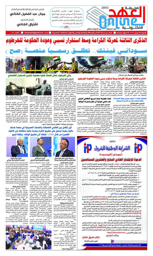 الرئيسية|الأخبار|صحيفة العهد اونلاين العدد (14) PDF الأخبارالارشيفالسودانصحيفة العهد اونلاين العدد (14) PDFJamal Kinany أرسل بريدا إلكترونيا 14/04/2026 33 الوسومpdf العدد (14) PDF صحيفة العهدJamal Kinany أرسل بريدا إلكترونيا 14/04/2026 33 فيسبوك تويتر ماسنجر ماسنجر واتساب تيلقرام طباعة