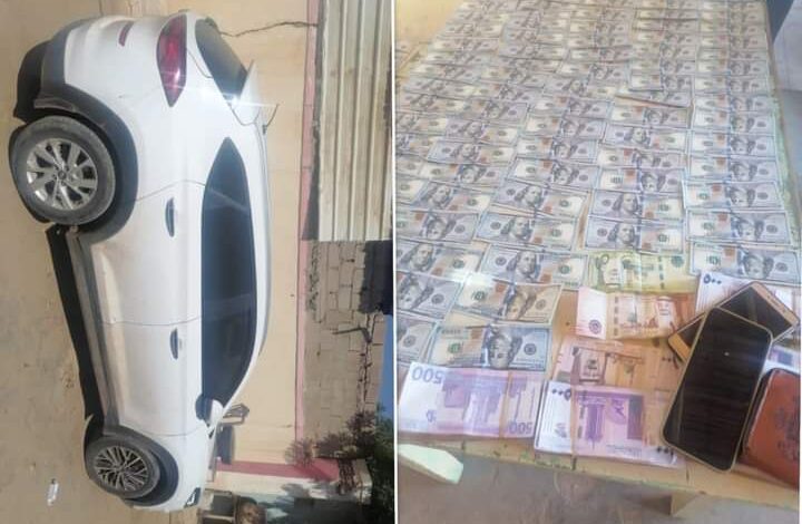 ضبط (عملات اجنبية ) ووطنية وعربة “توسان “