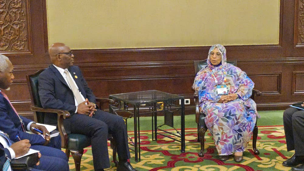 في إطار اللقاءات الثنائية مع وزراء خارجية الدول الافريقية المشاركة في المؤتمر الوزاري الثاني لمنتدى الشراكة الروسية الإفريقية والذي انطلقت قعالياته اليوم الجمعة بالقاهرة ، إلتقت د ليمياء عبدالغفار خلف الله وزيرة مجلس الوزراء رئيس الوفد السوداني المشارك بالسيد سيميون اوندو اوكوبو وزير خارجية غينيا الإستوائية عضو مجلس السلم والأمن بالإتحاد الافريقي .