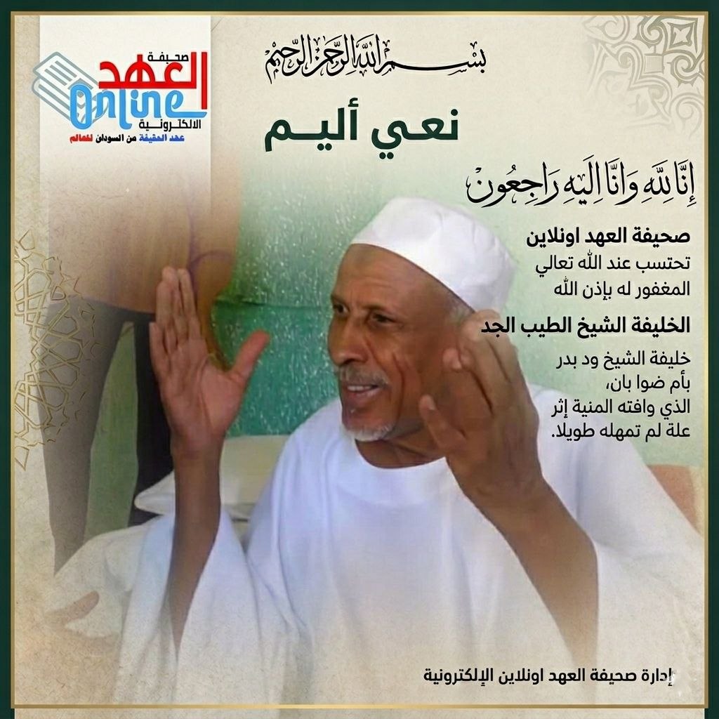 وأعربت النظارة، ممثلة في الناظر وأعيان ووجهاء القبيلة، عن بالغ حزنها لفقد أحد أبرز الرموز الدينية والوطنية، مشيدةً بسيرته التي اتسمت بخدمة القرآن الكريم، وإغاثة المحتاجين، والعمل على إصلاح ذات البين بين مكونات المجتمع السوداني.