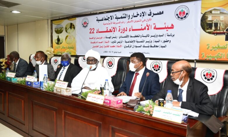 ومن جانبه طالب رئيس مجلس إدارة المصرف عزالدين محمد أحمد بأهميه زيادة رأسمال المصرف حتى يتمكن من تنفيذ كافة مشروعاته في المجال الاجتماعي وذكر أن المصرف وجه معظم موارده لتمويل مشروعات التمويل الأصغر والتي استفاد منها أكثر من ١١٤ الف أسرة بمعدل أداء فاق ال..١٩١ ٪ عما هو مخطط لنفس العام