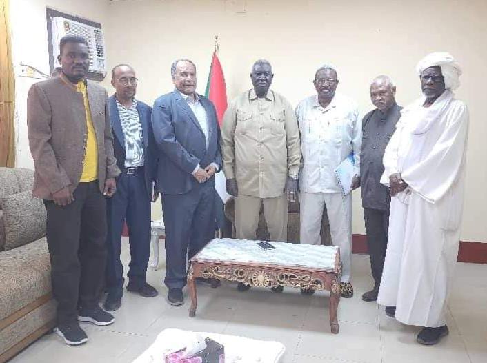 بروفيسور محمد حسن دهب وزير التعليم العالي والبحث العلمي مع وفد جامعة النيل الازرق برئاسة رئيس مجلس الجامعة ومدير الجامعة وأعضاء لجنة