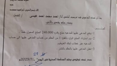 إلى إسماعيل جمعة آدم بما ان فردوس جورج إسماعيل قد رفعت ضدك الدعوى بالنمرة أعلاه في موضوع تطليق للغياب عليه مطلوب حضورك أمامي بديوان هذه المحكمة لجلسة يوم ١١.٦ – ٢٠٢٣