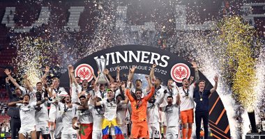 تسلم فريق آينتراخت فرانكفورت الألماني كأس الدوري الأوروبي والميداليات وسط فرحة عارمة من اللاعب عقب الفوز بضربات الجزاء الترجيحية على حساب جلاسكو رينجرز الأسكتلندي في المباراة التي أقيمت بينهما مساء الأربعاء على ملعب “لا كارتوخا” بمدينة إشبيلية الإسبانية في نهائي بطولة الدوري الأوروبي للموسم الحالي 2021-2022.