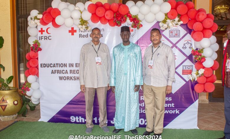 شارك الأستاذ إمام الدين محمد أحمد المدير التنفيذي لجمعية الهلال الأحمر السوداني بولاية نهر النيل و م.أسامة مصطفى منسق تنمية المتطوعين بالجمعية، في ورشة التعليم في حالة الطوارئ المنعقدة في غامبيا