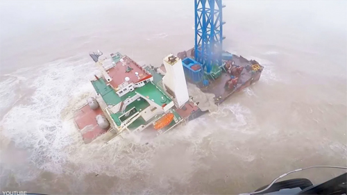 في مشهد مرعب، حطمت عاصفة استوائية هوجاء، سفينة في عرض البحر، وشطرتها إلى نصفين، مما أدى لاختفاء 20 شخص من طاقمها، قبالة هونغ كونغ.