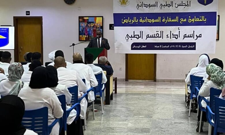 واشار المغيرة إلى تكريم مجلس وزراء الصحة العرب للطبيب السوداني،داعياً المحافظة على السمعة الطيبة للطبيب السوداني عبر الاجتهاد والمثابرة في خدمة المرضى،مؤكدا أن القسم يعتبر مسؤولية، داعيا إلى اهمية
