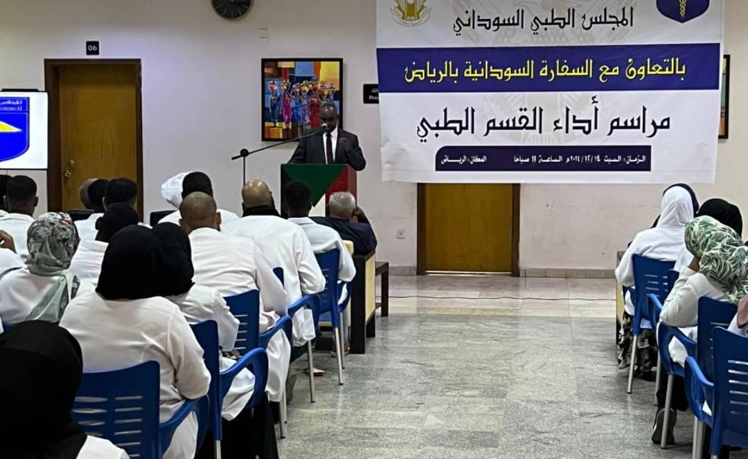 إنسانية الطبيب في ممارسة العمل ، شاكرا كل الأساتذة من الاطباء بالإضافة لشكر خاص للمجلس الطبي السوداني وسفير جمهورية السودان بالمملكة العربية السعودية لتسهيل الإجراءات للاطباء وانجاز كل الملفات الصحية ، مقدما التهنئة للاطباء ، متمنيا انتصار القوات المسلحة في معركة الكرامة والعودة لإعادة النظام الصحي للافضل .