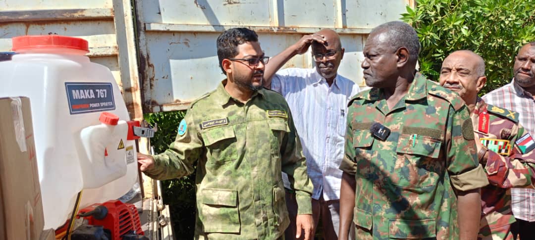 الاستاذ وحيد بيومي ممثل مبادرة صرفة فى الارجاء قال أن القافلة تحتوي على معدات وطلمبات رش ومبيدات مؤكدا استمرار القوافل لكل المناطق المحررة فى أرض