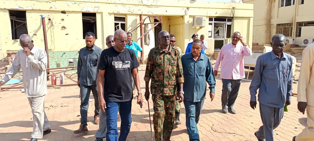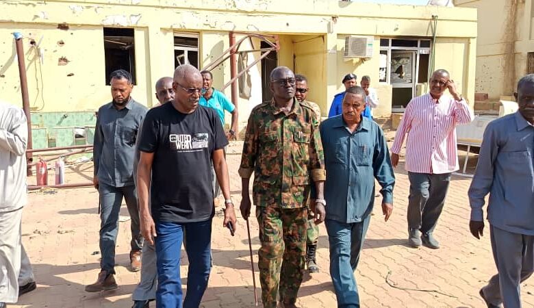 إلى ذلك تفقد الوالي مقر الوزارة ووقف علي حجم الدمار الذي الحقتة المليشيا المتمردة من تدمير للاثاثات ونهب مقتنيات الوزارة وحرق بعض الملفات الخاصة معاملات المواطنين.