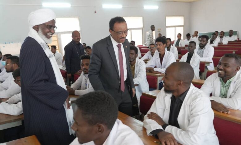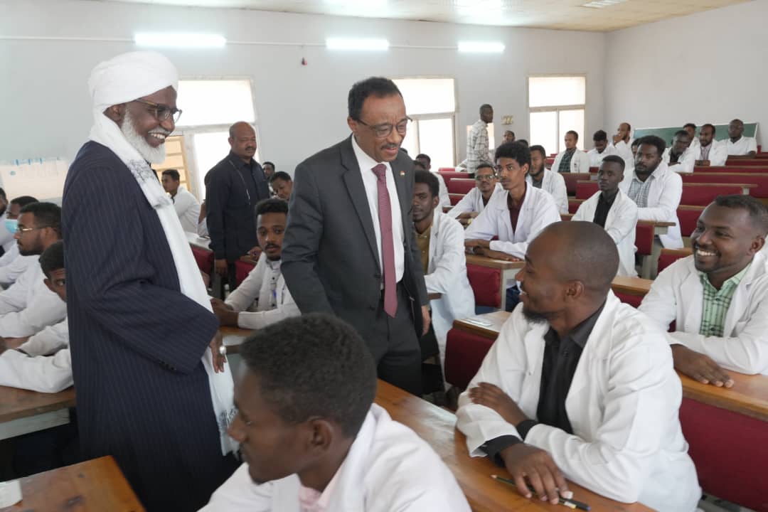 البروفيسور الفاتح الحبر عمر أحمد مدير الجامعة والبروفيسور طارق حسن بن عوف نائب مدير الجامعة وعدد من القيادات الإدارية وعمداء الكليات . وتفقد الوزير سير العملية التعليمية وامتحانات الدفعة 32 كلية الطب والعلوم الصحية وعدد من المنشآت الجديدة المتمثلة في مشرحة كلية الطب ومعمل الحاسوب وكما تفقد أمانة الشوون العلمية. وعدد من القاعات الدراسية. وتلقي سعادته عدد من التقارير الادارية والأكاديمية وتقرير عن أداء عمادة شؤون الطلاب.