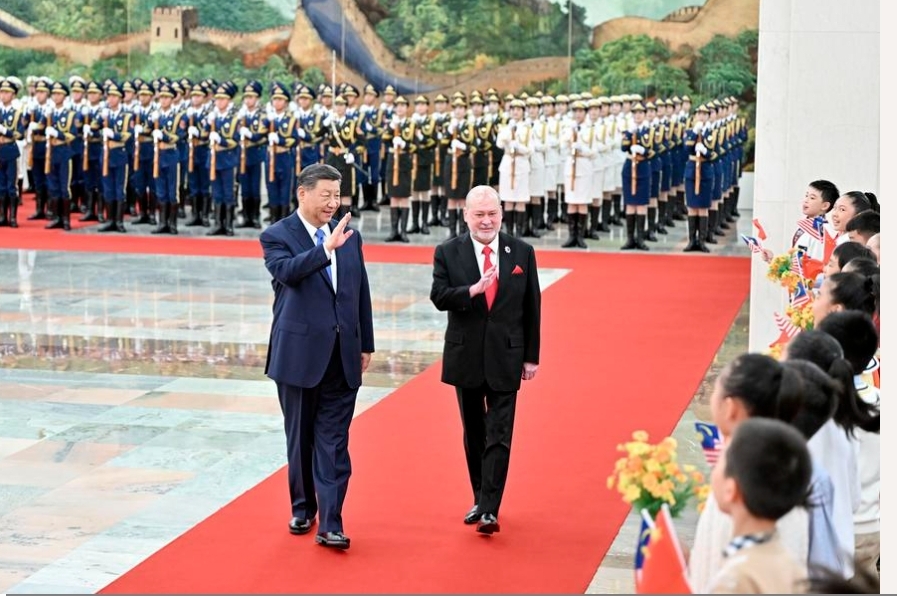 الرئيس الصيني شي جين بينغ يقيم مراسم ترحيب بملك ماليزيا السلطان إبراهيم بن السلطان إسكندر، الذي يقوم بزيارة دولة إلى الصين، قبل محادثاتهما في بكين، عاصمة الصين، في 20 سبتمبر 2024.(شينخوا)