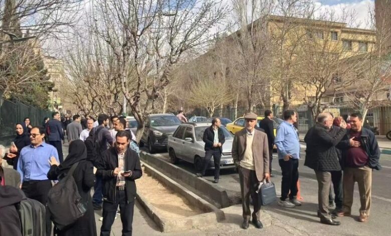 في الصورة الملتقطة يوم 28 فبراير 2026، أشخاص يتجمعون في شارع بالقرب من جامعة طهران، عقب الهجمات التي وقعت في العاصمة الإيرانية طهران. (شينخوا) أعلن الجيش الإسرائيلي صباح اليوم (الأحد) أنه بدأ "موجة واسعة" من الغارات في قلب العاصمة الإيرانية طهران. المصدر | شينخوا