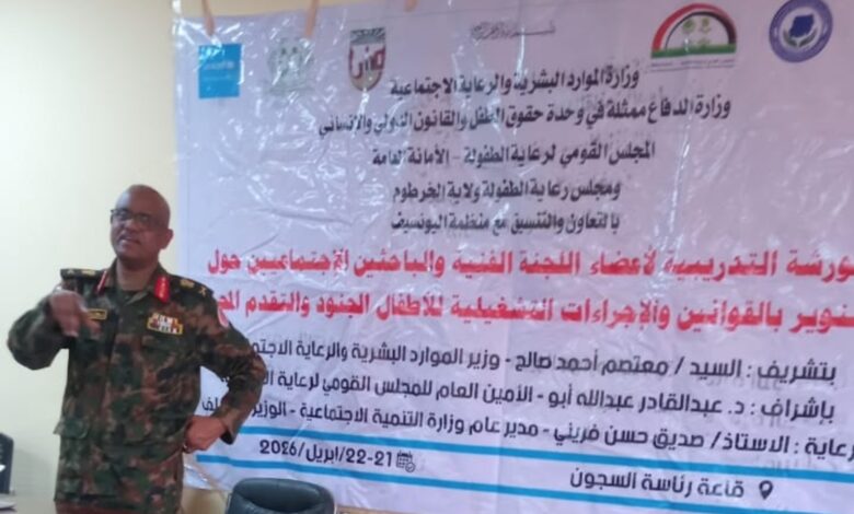 نظم المجلس القومي لرعاية الطفولة بالتعاون مع وحدة الطفل بالقوات المسلحة ومجلس الطفولة بولاية الخرطوم ومنظمة اليونيسف، ورشة تدريبية للكوادر…