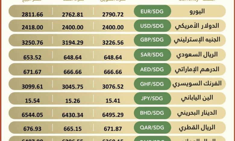 أصدر بنك الخرطوم نشرة أسعار صرف العملات الأجنبية مقابل الجنيه السوداني ليوم السبت 20