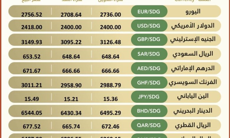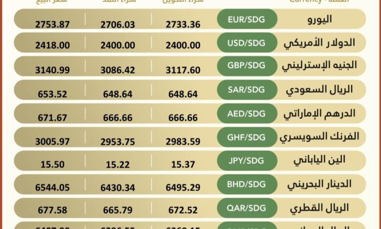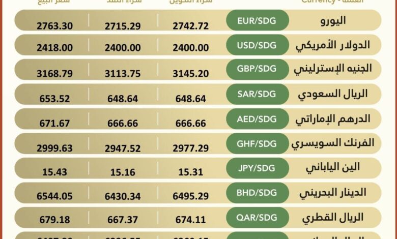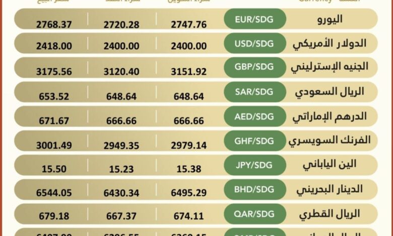 أصدر بنك الخرطوم نشرة أسعار الصرف للعملات الأجنبية ليوم الأربعاء 17 ديسمبر 2025، والتي