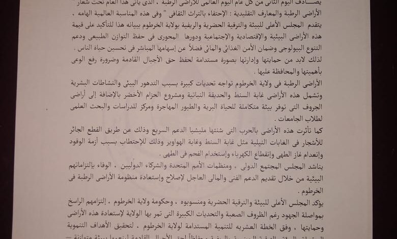 يصادف اليوم الثاني من فبراير من كل عام اليوم العالمي للأراضي الرطبة، الذي يأتي هذا العام تحت شعار " الأراضي…