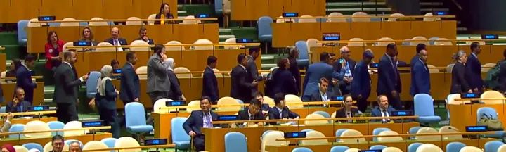 شهدت قاعة الأمم المتحدة انسحاباً جماعياً لعدد من ممثلي الدول والوفود الدبلوماسية، وذلك عقب صعود