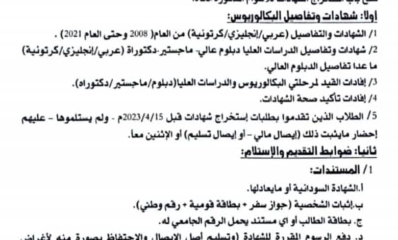جامعة القران الكريم والعلوم الإسلامية..أمانة الشئون العلمية.. إعلان استخراج الشهادات