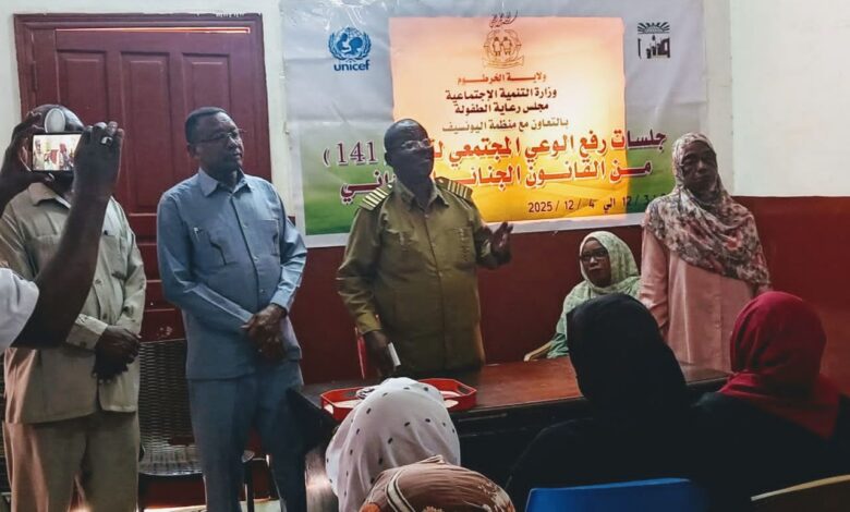 نظم مجلس رعاية الطفولة بالولاية جلسات توعوية لرفع الوعي المجتمعي بالمادة (141) من القانون الجنائى السوداني وذلك التعاون مع اليونيسيف…