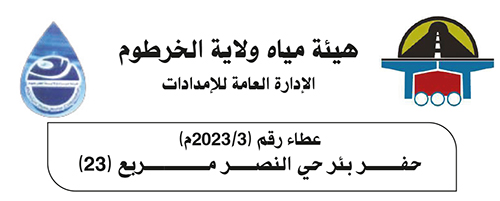هيئة مياه ولاية الخرطوم الادارة العامة للإمدادات عطاء رقم (3 /2023م) حفر بئر حي النصر مربع (23) ترغب هيئة مياه…