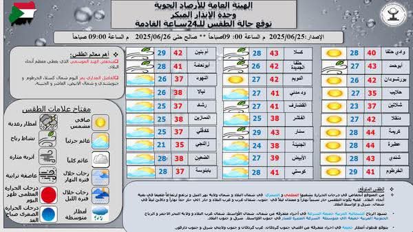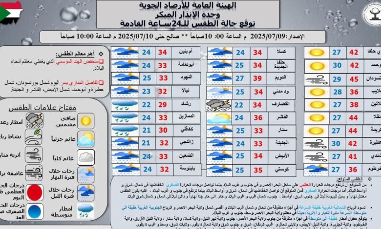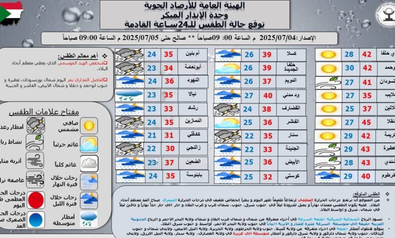 أصدرت الهيئة العامة للأرصاد الجوية – وحدة الإنذار المبكر، اليوم الجمعة 4 يوليو 2025، تقريراً عن أهم
