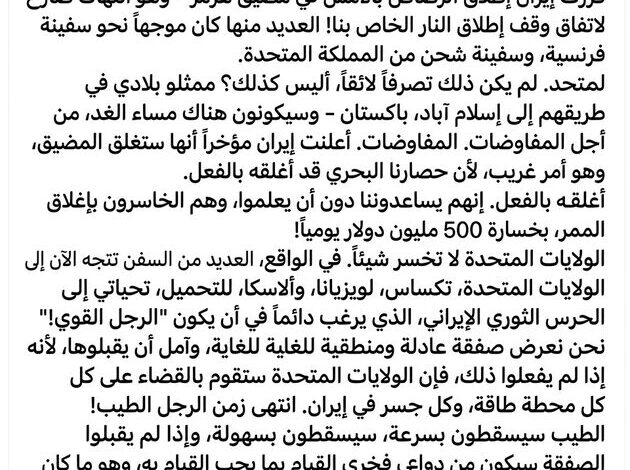في تصعيدٍ لافت يحمل نبرة تهديد مباشرة، أعلن دونالد ترامب عبر منصة “تروث” عن توجهٍ أمريكي حازم تجاه إيران،…