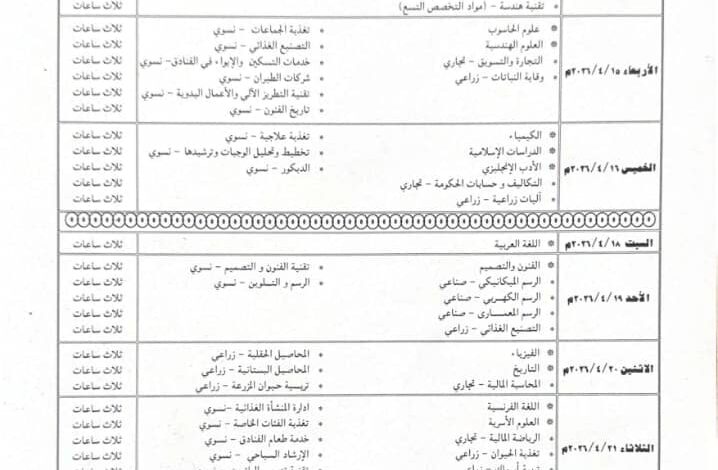 اعلنت وزارة التعليم والتربية الوطنية عن جدول امتحانات الشهادة الثانوية 2026م المحدد انعقادها في الثالث عشر من أبريل المقبل