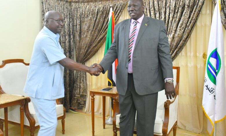 التقى الفريق أحمد العمدة، حاكم إقليم النيل الأزرق، بالعميد جعفر جاكلو، وزير التخطيط العمراني والبنية